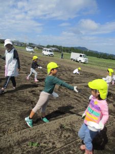 ひろ~~い畑の中にどんどん蒔いていきました。