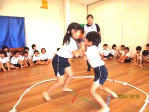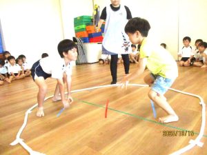 今日は以上児クラスの十五夜綱引き相撲大会でした。