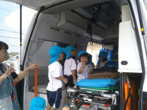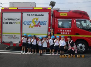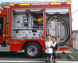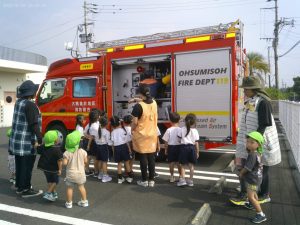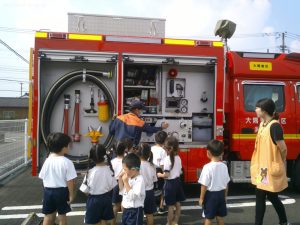 消防車の中を見せてくださったり、仕組みを教えてくださったり・・・子どもたちは、興味津々でした。