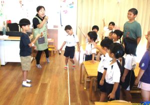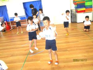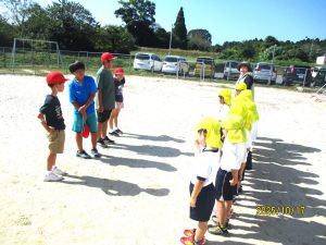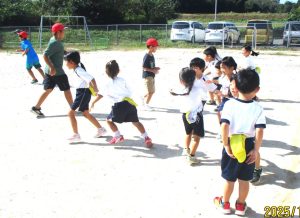 次は、園庭で「しっぽ取りゲーム」が始ま