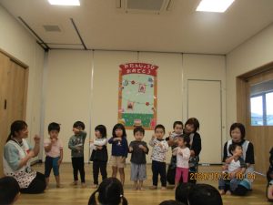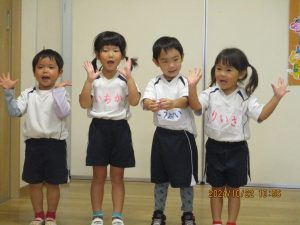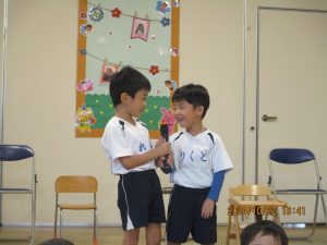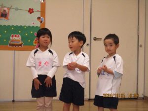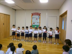 まずはたいよう組の2人がはじめのことばを言ってくれました。少し照れながらも元気いっぱいはじめの言葉を言ってくれました。