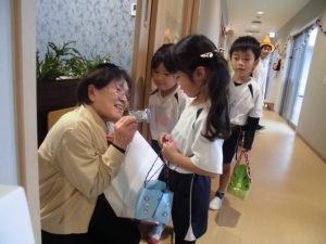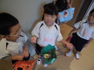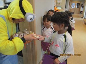 つき組のお友だちも、みんなで「お菓子ください!」と回りました。