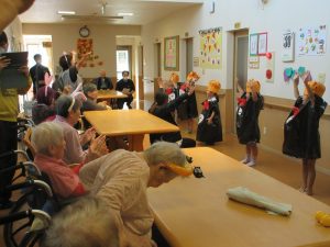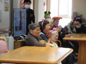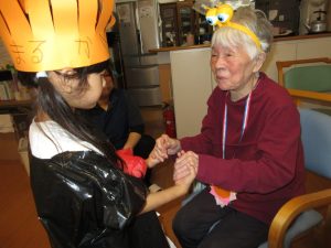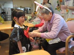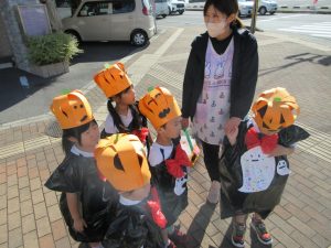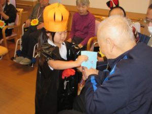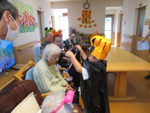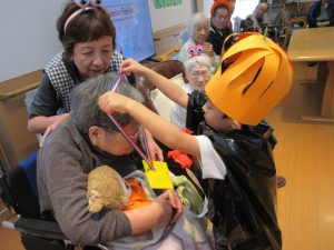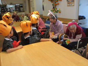 ハロウィンも近く、仮装をしておじいちゃんおばあちゃんに喜んでもらおうとみんなで衣装を着けて向かいました!