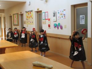 パーランクーをたたく音が施設内に響き、子どもたちも真剣な表情で一生懸命披露してくれました。