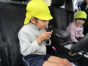 「5人乗れます。」という答えに「えー、5人も乗れるの?すごいね!」と嬉しそう!!
