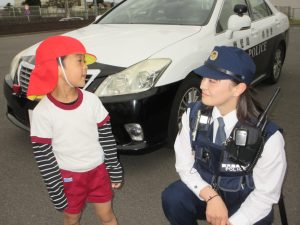 警察官の方に「おはようございます!」「よろしくおねがいします!」とあいさつをすると、