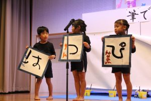 12月6日に、第5回発表会が行われました。今年のオープニングは、年長児による書道パフォーマンスでした。