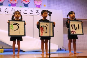 1人、一文字を力強く書いてくれました。発表会のスタートです!と元気よくはじめの言葉も言えました。