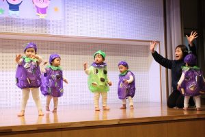 ほし組さんは、「ぼくたちわたしたちぶどう」を踊ってくれました。ぶどうの衣装がとてもかわいかったです。