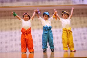 次は、3歳児そら組の男の子の「それもいいね」でした。初めての発表会を経験する男の子たちでしたが、笑顔いっぱい踊ってくれました。