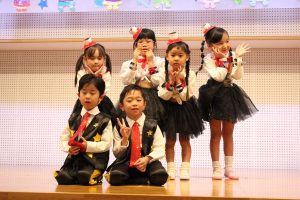 第5回目の発表会を無事に終えることができました。子どもたちは、日頃の成果を十分に発揮できたようです。保護者の方々もお仕事が終わってからの出し物の練習や、発表会に向けて衣装の準備などご協力いただき、ありがとうございました。また一つ大きな行事を終えて、大きな成長を感じました。これからもよろしくお願いします。