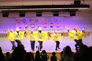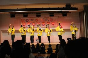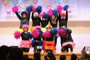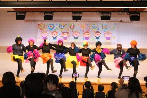 次は、職員の出し物です。職員みんなで「おどるぽんぽこりん」を踊りました。