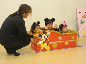 発表会初めての0歳児の3名がソリ🛷に乗って登場してくれました(^_^)