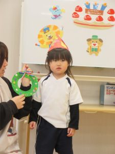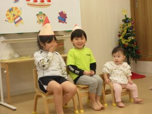 まずは12月のお誕生会からスタート☆今月は3人のお友達がお誕生児でした。