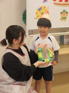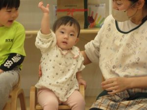 お名前を呼ばれて「は~い!」と上手に手を挙げてくれました☆
