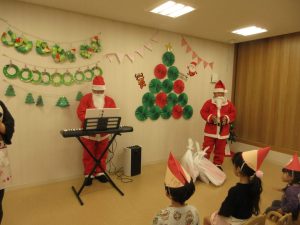 そして、ピアノが得意なサンタさん、子どもたちに楽しいクリスマス音楽を届けてくれました☆