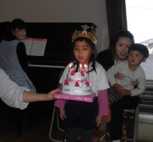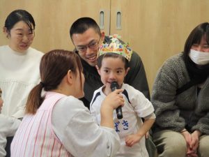 1月のお誕生日おめでとうございます。これからも元気で過ごせますように・・・保護者の方々もお忙しい中ご参加くださり、ありがとうございました。お父さんお母さんと一緒にお祝いしてもらい、うれしそうなお誕生児のお友だちでした。