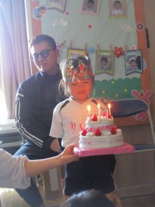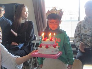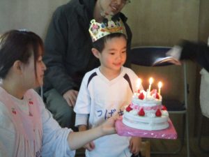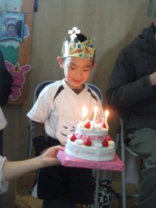 ハッピーバースデイの歌を歌ってもらって、みんなにお祝いしてもらいました。