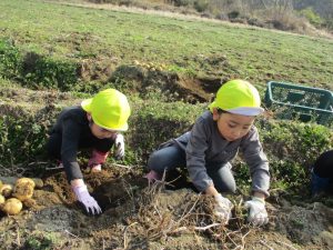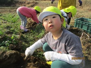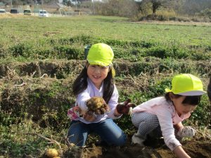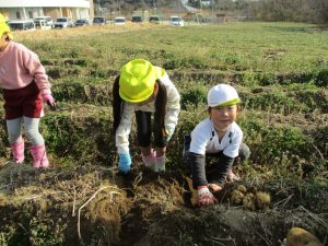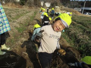 今日は、赤松さん(卒園児のお父様です✨)にじゃがいも掘りに誘って