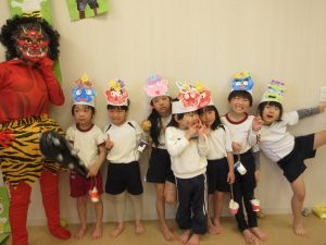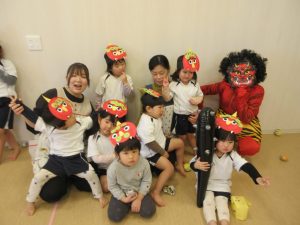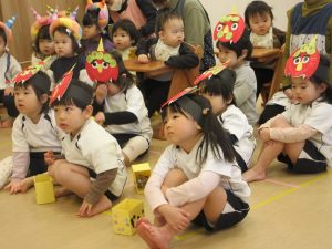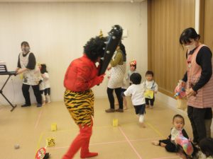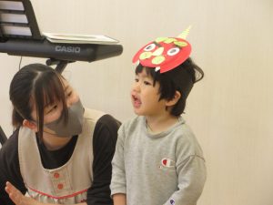 元気な声で鬼のパンツと豆まきの歌をうたいました♪