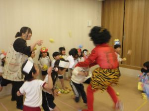 鬼に先生が1人連れ去られてしまうと、たいよう組のお友だちが