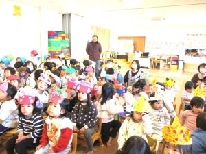 まずはホールで節分についてのお話を聞きました(*^-^*)