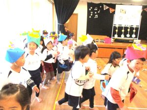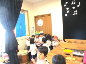 お話が終わると未満児さんはお部屋へ