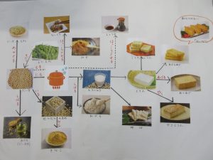 子ども達に写真や大豆製品を使って伝えました。