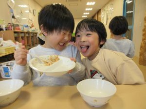 給食の時間を楽しんでいましたよ。