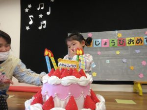 1月の誕生会に参加できなかったので、2月のお友達と一緒にお祝いしました☆