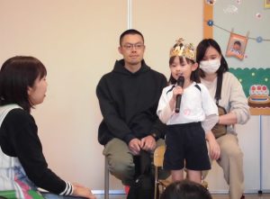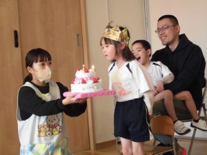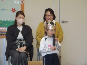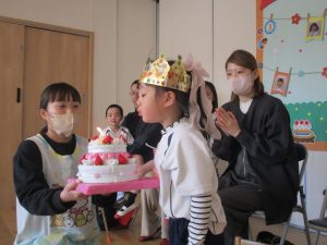 11日に、3月のお誕生会がありました。今月は2名のお友だちがお誕生日を迎えました。