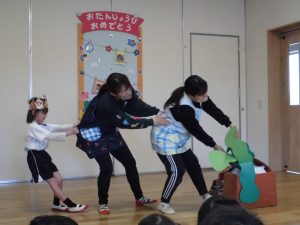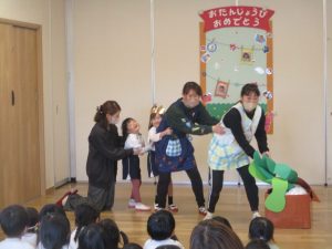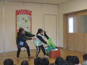 職員の出し物では、「おおきなかぶ」の劇をお誕生児のお友だちと一緒に披露しました。
