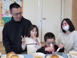 お父さん、お母さんと一緒に食べられてとてもうれしそうでした。