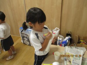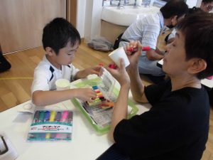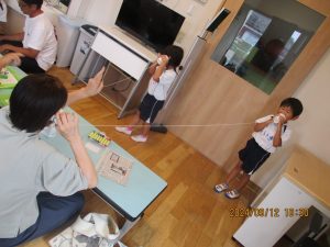 ☆以上児さんはホールで、廃材で製作をしたり、糸電話を一緒に作ったりと触れ合いを楽しみました🎵