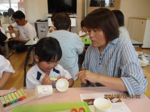 おじいちゃんおばあちゃんから沢山教えてもらって、アイディアもいただきながら、すてきな糸電話の完成!