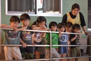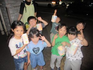 怖いと言っていたお友だちも先生と一緒で安心して花火をして、「きれいだね」と楽しむことができました。
