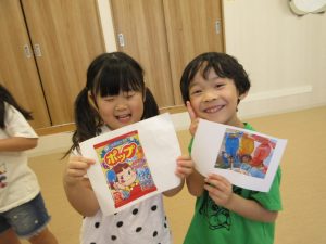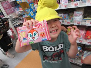 保育室のどこかにお菓子の紙が貼ってあるので、それを見つけて見つけた物をそれぞれお店に行って買いましょう!