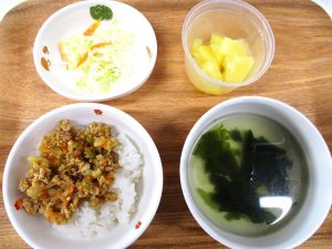 今日は豚ミンチとお野菜を炒めて仕上げた『ドライカレーライス』でした。