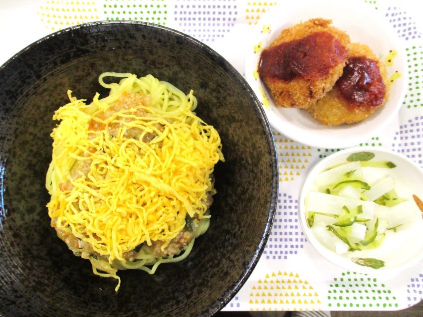🌟今日のメニューは、台湾まぜそば・キャベツのコロッケ・大根の守口漬け風でした♪
