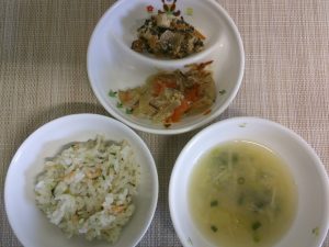 炒り豆腐はひじきも入っていて、豆腐にも味がしみ込んでいておいしかったです。