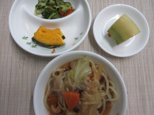 今日の給食は、ちゃんぽんラーメンでした。ちゃんぽんラーメンには豚肉もえびも入っていて、野菜いっぱい✨子どもたちはおかわりもしてたくさん食べてくれましたよ☺ブロッコリーのサラダは酸味もあり、さっぱりと食べることができました。焼きかぼちゃはかぼちゃの甘味があり、ホクホクしておいしかったです。最後はみんなが大好きなバナナ✨嬉しそうに食べている子どもたちでした✨