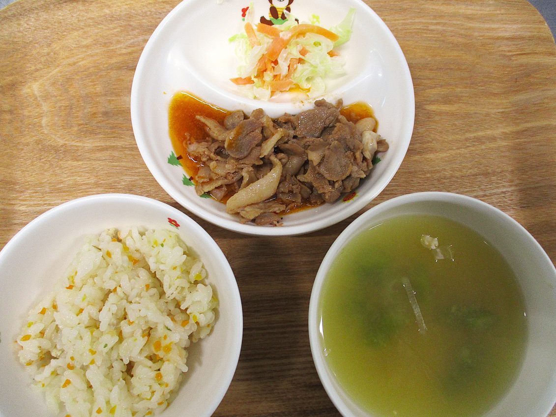 今日のメニューは 🌾麦ごはん、🍅ポークチャップ、🌽アスパラコーンスープ、🥗コールスローサラダ でした!