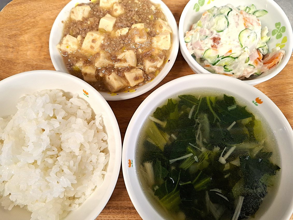 みじん切りにした玉ねぎと白ねぎを、しょうがとゴマ油の香りが立つまでじっくり炒めて作ったマーボー豆腐は、やさしい味つけで子どもたちにも食べやすく、白ごはんがどんどん進む一品でした🍚