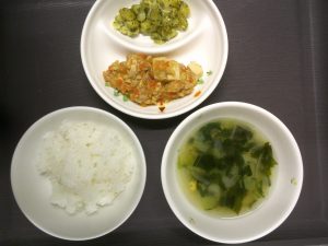 今日の給食は、マーボー豆腐でした。ひきわり納豆入りのマーボー豆腐でしたが、子どもたちもご飯が進みたくさん食べてくれておかわりもしてくれました♪わかめスープも子どもたちも大好きなコーン入りで、最後の一滴まできれいに残さず食べてくれていましたよ✨磯辺さつまいもは青のりとお芋の相性も良く、ほくほくしたおいもが甘味もありきれいに食べてくれていました☺