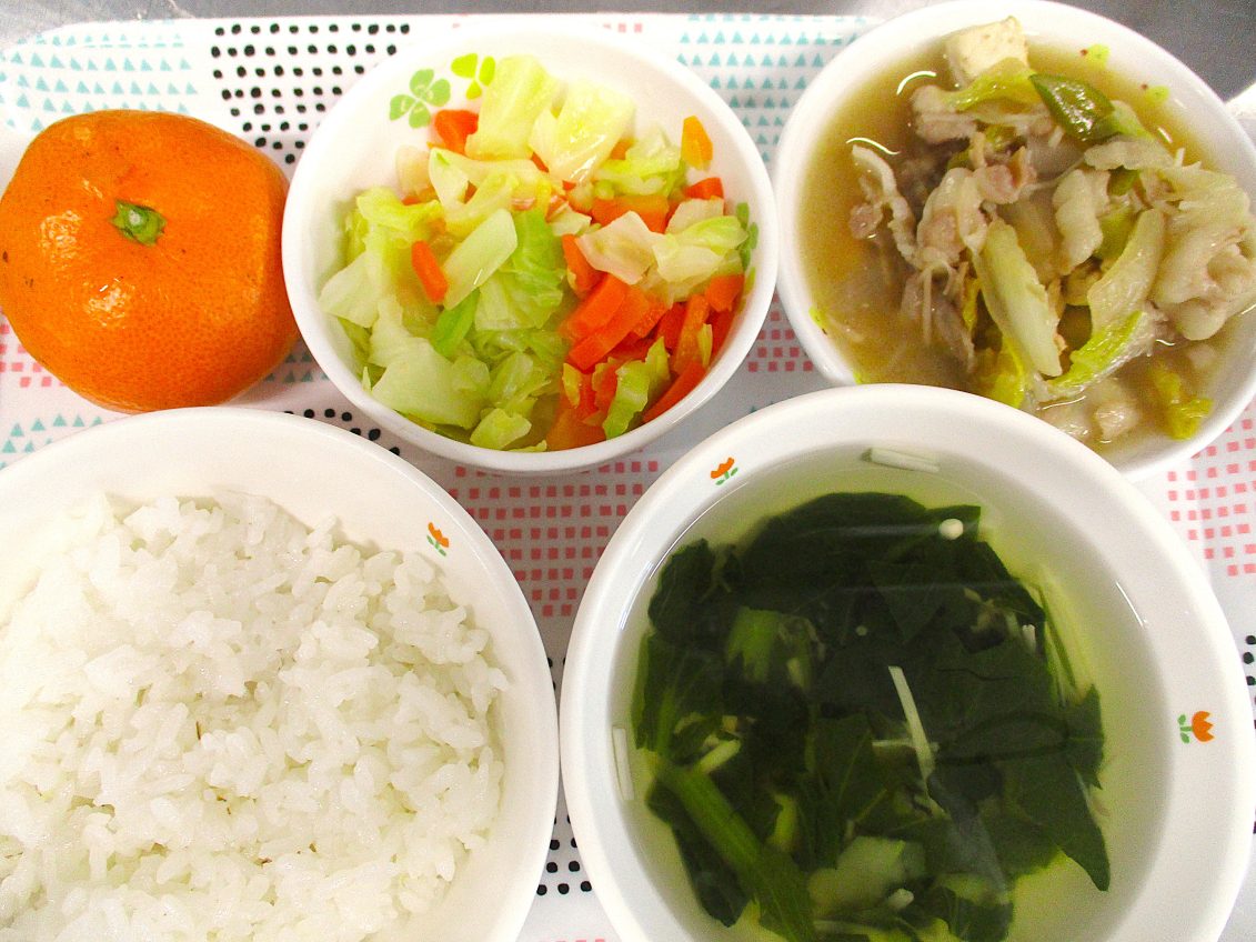 きらり園 2026.01.22 1月22日(木)の給食は、麦ごはん・豚肉のすき焼き風煮物・すまし汁・キャベツの浅漬け・みかんでした🍚🥬🍊豚肉のすき焼き風煮物は、やさしい味付けで野菜もたっぷり入り、子どもたちにも食べやすい一品でした😊すまし汁は自家製のだしを使い、香りよく、ほっとする味わいに仕上がっています🍲「おいしい!」という声もたくさん聞かれ、子どもたちが笑顔で食べてくれました✨これからも、季節の食材を大切にしながら、心も体も元気になる給食を届けていきます🌱