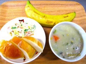 ・ロールパン ・冬野菜のシチュー ・パスタサラダ ・バナナ