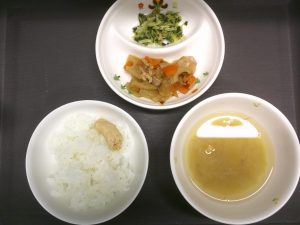 今日の給食は、筑前煮でした。れんこんやごぼうなど噛み応えのある食材を取り入れ、子ども達には噛むことを意識して食べてほしいメニューでした。味もしみ込んでいておいしく、子ども達もよく噛んで食べていましたよ☺小松菜のツナ和えは、程よく酸味があり、さっぱりと食べることができました。もやしのみそ汁はコーンクリームが入っていて、甘みもあり飲みやすかったです。今日は納豆もあり、おかずもしっかり味がついていたので、ごはんが進みました♬